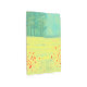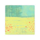 Un moderno cuadro paisajístico contemporáneo con una tranquila florida pradera de verano con pájaros volando contra el cielo y un bosque de pinos a lo lejos. Los colores amarillo y verde son frescos y edificantes. Arte original de Nic Squirrell.