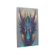 Esta pintura muestra una impresionante representación de la cabeza de un místico y feroz dragón. El dragón se representa en un estilo realista en color verde azulado, dorado y violeta y tiene un aspecto potente y feroz. La pintura tiene un sentido de misterio e intriga.