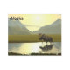 En algún lugar del interior de Alaska, un alce se desplaza por un estanque en una soleada tarde de otoño. A medida que se acerca el final del año, la luz se ha iluminado en un tono amarillento que hace que todo parezca un poco frágil. El sol está cayendo entre las montañas en segundo plano. También aparece un texto de personalizable que dice "Alaska".