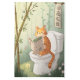 Step into a world of charm and humor with this delightful illustration of an orange tabby cat enjoying a newspaper while sitting on a toilet in a serene, bamboo-filled garden. This whimsical design captures the essence of relaxation and quirky behavior, blending the mundane act of reading the paper with a touch of nature's tranquility. The soft pastel colors and detailed background create a cozy, lighthearted atmosphere that is sure to bring a smile to your face.