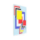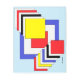 Esta obra de arte geométrica abstracta de Richard H. Fay presenta un conjunto de cuadrados en los colores primarios del rojo, el azul y el amarillo, así como el negro y el blanco.