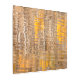 La imagen muestra un patrón abstracto creado por el reflejo de los árboles otoñales en el agua que riega. La superficie del agua es un lienzo de líneas y formas agitadas y distorsionadas, principalmente en tonos marrones, amarillos y blancos. El reflejo de los árboles otoñales crea una sensación de profundidad y movimiento, con los colores mezclados y solapados de una manera hipnotizante.