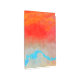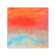 Un diseño abstracto de una puesta de sol del océano con colores llamativos en rojo, naranja, cian, azul y beige.