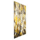 La imagen muestra una vista de primer plano de un grupo de abedules, su corteza blanca destacada en un fondo de marrones y amarillos apagados. Los troncos están en capas y se superponen, creando una sensación de profundidad y textura. La paleta de colores general es cálida y sabrosa, con toques dorados y blancos que evocan una sensación de tranquilidad y belleza natural.