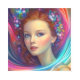 Esta impresionante obra de arte digital presenta a una mística mujer con ojos azul radiante y cabello de color arcoiris con flores y estrellas brillantes. El diseño vibrante y onírico combina fantasía y belleza, perfecto para los aficionados a la estética mágica, el núcleo de hadas y el arte etéreo.