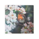 Pintura de aceite en un estilo realista, representando un solo ave rojizo sentada sobre ramas de árboles de cerezo florecientes. Una alegría primaveral y la música de la naturaleza representada en los colores.