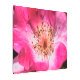 Una fotografía de primer plano captura la delicada belleza de una rosa rosa rosa en plena floración. La imagen se centra en el centro de la flor, mostrando los detalles intrincados del pistil y los estambres. Los pétalos son un rosa vibrante, que se desvanecen a una sombra más ligera hacia el centro, donde rodean un grupo de anteres dorados-marrones cargados de polen.