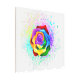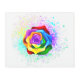 Rosa grande y floreciente con pétalos de arco iris sobre fondo blanco, pintado con salpicaduras de pintura colorida y brillante. 3.ª