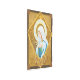 Este diseño está inspirado en una hermosa calcomanía pintada y bordada sobre una vestimenta católica romana usada para masas de la Madre Bendita. Lleva un tallo de mentiras en las manos, un ramo de rosas la envuelve, un halo corona la cabeza.