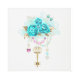Llave de oro antiguo con rosas turquesa de moda decorados con hojas de oro blanco y cuentas rosas y azules. Color de moda. Rosas turquesas. Oro blanco. Tifanía azul.