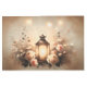 A softly glowing lantern becomes the heart of a romantic cottagecore scene, surrounded by blush roses, airy wildflowers, and floating heart lights that feel dreamy and hopeful. Warm amber tones blend into a misty backdrop, giving the artwork a gentle vintage glow. The composition feels serene, sentimental, and lovingly handcrafted, perfect for anyone drawn to whimsical florals and quiet, luminous beauty. AI generated artwork.