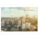Vista aérea del paisaje urbano de San Francisco, que muestra una densa colección de edificios bañados por la cálida y dorada luz del sol. La imagen capta una mezcla de estilos arquitectónicos, desde rascacielos modernos hasta estructuras históricas, con una iglesia prominente en el centro. El cielo es un azul suave con nubes blancas onduladas, lo que añade un sentimiento de tranquilidad a la vibrante escena urbana.