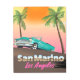 Afiche de viaje al estilo vintage de San Marino Los Angeles. Un hermoso afiche de viaje de un clásico coche americano montado en la puesta de sol crepúsculo de la noche.