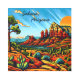 Aai, ciudad del desierto de Arizona, arte que representa sus brillantes cañones rojos, cactus y cielos azules.
