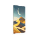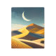 This stunning metal print features a majestic crescent moon hanging over a landscape of stylized, graphic sand dunes. The clean, elegant curves and bold shapes of golden-yellow, blue, and deep brown create a peaceful, modern, and minimalist feel.