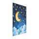 Experimente la tranquila belleza de la "Serenidad Celeste", una fascinante obra de arte que capta la esencia de un cielo estrellado. Esta pieza presenta una impresionante representación de una luna creciente brillando suavemente contra un fondo azul profundo, rodeado de estrellas brillantes y nubes delicadas. Los cálidos tonos dorados de la luna y las estrellas contrastan con los tonos fríos del cielo nocturno, creando un sentimiento de paz y asombro. Perfecto para los que buscan un toque de magia celeste y serenidad en sus espacios comunes