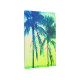 Silhouette exótica de palmeras caliente neón verde luz solar vista arte metalizado. Diseño fotográfico tropical con cita inspiradora. ¡Marea el día! Decoración elegante para casa, hotel, oficina, dormitorio, tienda, restaurante y más. Diseño de arte mural personalizado. También es ideal para casas de playa exóticas o casas de vacaciones.