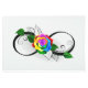 símbolo infinito con rosa arcoiris sobre fondo blanco.