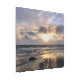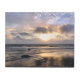 Un diseño fotográfico de una puesta de sol suave y soñadora sobre el mar y reflejado en el agua de la playa. Gales.
