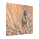 En una rama espinosa hay un gorrión de garganta negra con un plumaje marrón y blanco. El pájaro tiene un parche negro distintivo en la garganta y una tapa marrón en la cabeza. Las ramas son vacías y espinosas, lo que crea un ambiente natural, un tanto duro.