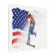 En esta colorida obra de arte se ilustra un joven motorista con la bandera de los Estados Unidos al fondo. Ideal para niños y deportistas de todas las edades.