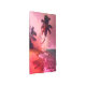 This stunning metal print captures a mysterious tropical beach, where vibrant pink and red smoke drifts across the sand and mixes with the ocean waves. The moody, atmospheric light creates a feeling of fantasy and wonder.