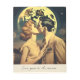Poster de viajes de la vieja familia de una pareja romántica besándose cerca de un lago con la luna al fondo