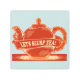 Un diseño gracioso para cualquiera que ame reunirse con amigos y beber té. Ilustracion vectorial de una tetera con una cinta envuelta alrededor de ella. El texto de la cinta dice: juntémonos y tomemos el té.