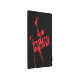 Red stylized graphic of Batman holding up his cape with The Batman theatrical logo on top.