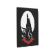 Batman standing in silhouette by the Batcycle with Bat Logo.