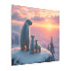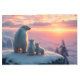 Esta impresionante imagen capta a un oso polar madre y sus cachorros parados en el borde de un nevado acantilado siberiano, mirando hacia un tranquilo valle debajo. Unas nubes suaves y pluviosas arden con tonos pastel, mientras que la nieve brilla como los diamantes en la luz que se desvanece, creando un ambiente tranquilo.