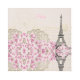 postal de la torre Eiffel vintage con reflejo de flores rosadas