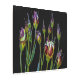 Los tulipanes morados luminosos y etéreos en marcado contraste con un fondo negro dramático.