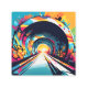 Una vibrante pintura digital del túnel de Tran i. El túnel está cubierto por pintadas de colores. La pintura captura la belleza y la energía del túnel