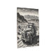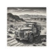 Un camión en un desierto con dibujos de carbón vegetal en las montañas.