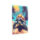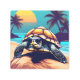 un diseño fresco de inspiración retro que reune las vibraciones relajadas de una tortuga colgada en la playa y la estética icónica de la cultura de las ondas sintéticas. Imagínate esto: una tortuga elegante que se pone unas gafas de sol elegantes y disfruta del resplandor neón de un sol inspirado en las ondas sintéticas, con una escena de playa fascinante y palmeras al fondo.