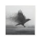 A solitary raven launches into a foggy landscape, its dark wings dissolving into a storm of tiny birds that scatter across the sky. The monochrome palette and cinematic composition give this piece a haunting, dreamlike quality, perfect for fans of ravens, dark fantasy, and moody atmospheric art prints.
