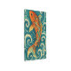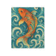 This piece is a masterpiece of modern, Japanese-inspired art. It features a vibrant orange and gold koi, its scales detailed with teal, swimming in a hypnotic sea of stylized 'Great Wave' swirls. The art has a rich, textured, woodcut-like quality that is both timeless and modern.