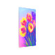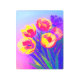 This piece features a vibrant bouquet of tulips, captured in a rich, "digital impressionist" or chalk-like texture. The hot pink and sunny yellow petals seem to vibrate with energy against a cool, dreamy background of blue and purple.