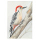 Capture the essence of nature with this stunning illustration of a woodpecker perched gracefully on a tree branch. This detailed artwork highlights the bird's striking red crest, black-and-white striped wings, and warm orange underbelly, set against a soft, natural background. The intricate details bring to life the woodpecker's unique features and its connection to the forest environment.