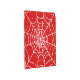 La tela de una araña se forma en un audaz vacío de color rojo sangre.