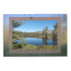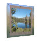Esta fotografía fue tomada cuando el agua aún estaba y fue una perfecta reflexión sobre el borde del lago. Luego añadí un marco extra con hojas que flotan en el aire. Se trata de un lugar tranquilo y adecuado para una pared en casa o en un ambiente de negocios.