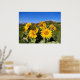 Diseño de imágenes Digitalbcon con un colorido balsamroot de hojas de arrojo contra un panorama de las Montañas Rocosas Canadienses del Parque Nacional Waterton Lake en el Suroeste de Alberta. Esta imagen se deriva de una foto tomada por Blair Wainman (también conocido como Digitalbcon Images Design).