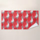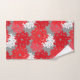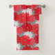 Sistema en una toma moderna en una impresión floral japonesa tradicional del kimono - flores estilizadas de la toalla en rojo chino profundo, el rojo coralino, y el blanco en un fondo gris/gris oscuro del grafito
