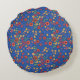 Una almohada redonda de moda o un colchón, con un patrón de bonito floral en un fondo azul marino francés. Este patrón, que forma parte de la colección "Granny Print" de Posh & Painterly, se puede ajustar fácilmente para que se ajuste a cualquier almohada o cojín.