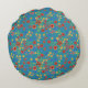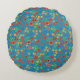 Una almohada redonda de moda o un cojín, con un patrón de miniimpresión floral de bonito sobre un fondo verde azulado. Este patrón, que forma parte de la colección "Granny Print" de Posh & Painterly, se puede ajustar fácilmente para que se ajuste a cualquier almohada o cojín.