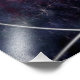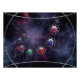Un ilustracion de infinito, cruzando el universo para combinar el microscópico y el telescópico en una muestra de formas y colores arcoiris. Columna de átomos multicolores de azul, rosa, rojo y verde rodeados de anillos de plata que atraviesan el espacio exterior en espiral contra un fondo de galaxias fractales coloridas.