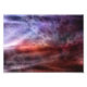 Patrones fractales blancos revoloteando sobre un telón de fondo de tonos naranjas y azules, como el amanecer irrumpiendo a través de la tormenta.