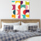 Esta huella geométrica tiene formas de semicírculo coordinadas simples en azul turquesa, amarillo soleado, morado oscuro, verde limón, frambuesa, naranja, rosa y crema. El diseño abstracto tiene un aspecto moderno y fresco. Esta impresión de lienzo se coordina con otros elementos de la colección Palm Springs de Delfuneum.