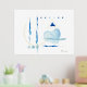 Impresión Metalizada Acuarela moderna Abstract Navy azul contemporáneo